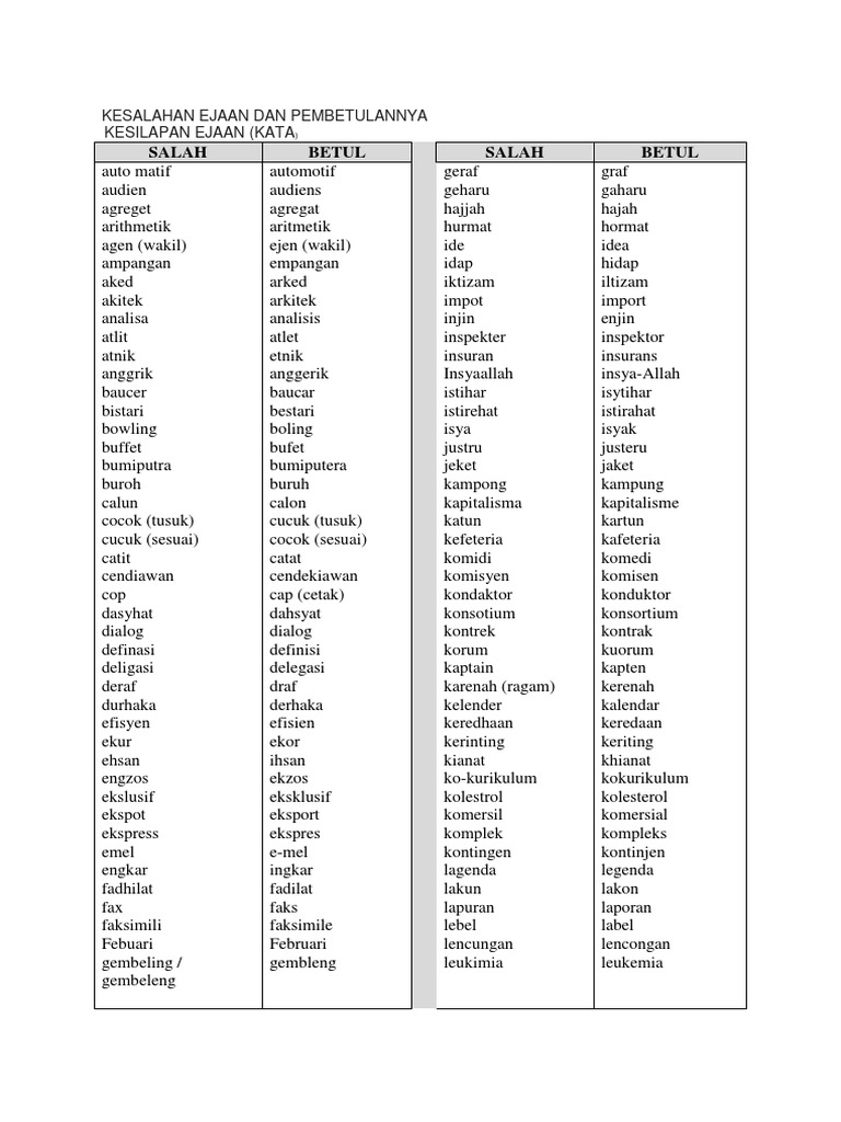 Mengenal pasti lebih daripada 60 kesalahan tatabahasa yang umum. Menyokong perisian MS Office terkini. Diantara empat bentuk kesalahan ejaan tersebut adakah yang masih membuat kamu bingung.